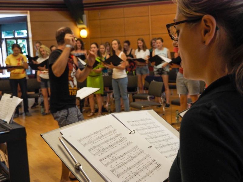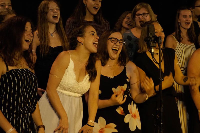 Die JUSIWO 2022 stand ganz im Zeichen der 4 Elemente. Mit Feuer, Wasser, Erde und Luft, die von den alten Griechen als Bausteine unserer Welt bezeichnet wurden, wurde im Gesamtchor ein abwechslungsreicher musikalischer Bogen gespannt.