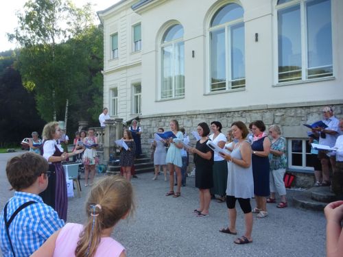 Die Bilder geben Eindruck vom Spaß der TeilnehmerInnen, egal, ob beim Tanzen, in den einzelnen Chorgruppen, beim abendlichen Häkelkreis der „coolen Frösche“, beim Stallbesuch der „Fische“, beim Baden in der Ybbs, beim Proben der nimmermüden Musikanten und bei den gemeinsamen Aktivitäten, wie dem Fackelzug und dem Sommerfest vor dem Schloss, bei dem einander die während dieser Woche erarbeiteten Stücke präsentiert wurden.